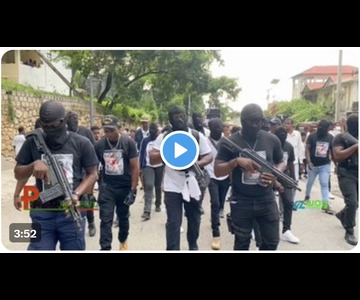 Des milliers de citoyens se sont rassemblés ce samedi sur la place Canapé-Vert pour rendre hommage aux membres de la brigade de vigilance tués lors d’affrontements avec des bandits armés à Pacot le 23 avril 2025.